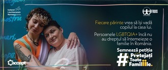 Protejați toate familiile din România!Toate familiile merită recunoaștere și protecție juridică. Dar, în acest moment, în România numai unele familii sunt recunoscute ca atare de către țara noastră. Familiile persoanelor LGBTQIA+, formate din cupluri de același sex, nu sunt recunoscute de stat. Chiar dacă sunt familii reale, legitime, întemeiate pe grijă, iubire și respect, pentru statul român acestea nu există. Acest lucru este nedrept, pentru că toți cetățenii ar trebui să se bucure de tratament egal și demnitate în relație cu autoritățile statului român. Pe 23 mai 2023, CEDO a constatat în cazul Buhuceanu și Ciobotaru și alte 20 de familii împotriva României, faptul că România a încălcat Articolul 8 al Convenției, care protejează viața de familie, în cazul celor 42 de petenți. În urma acestei decizii istorice, pentru a fi în acord cu Convenția, România trebuie să adopte o formă juridică de recunoaștere a familiilor formate din persoane de același sex. CEDO subliniază clar că aceste familii au nevoie urgent de o formă de recunoaștere care să le ofere acestor familii drepturi egale și să creeze un cadru legal care să protejeze traiului în comun al acestor cupluri. Statul român, prin Guvern și Parlament, trebuie să ofere soluții pentru rezolvarea unor situații concrete de viață pentru toți cetățenii săi. Indiferent de orientarea lor sexuală, cetățenii români au nevoie de reglementări care să le permită, tuturor, printre altele: să-și însoțească la spital partenerul, să-l moștenească sau să își poată revendica contribuția la clădirea căminului comun, să aibă un cuvânt de spus în ceea ce privește partenerul în diverse situații de viață și de moarte. De asemenea, trebuie să aibă posibilitatea să spună Da! în fața ofițerului de stare civilă și să dobândească recunoaștere în societate și în fața statului ca famile. Acest vid legislativ nu mai poate fi justificat astăzi, la peste 20 de ani de la adoptarea legislaţiei anti-discriminare și dezincriminarea relațiilor dintre persoane de același sex. Prin nerecunoașterea familiilor persoanelor LGBTQIA+, decidenții politici români transmit un mesaj social care invită la discriminarea și stigmatizarea acestor familii. Însă oamenii din țara noastră nu rezonează cu acest mesaj, fiind pregătiți să accepte recunoașterea familiilor din comunitatea noastră. 71% dintre români cred că recunoașterea legală a familiilor formate din același sex nu ar avea niciun impact asupra vieții lor, iar 68% consideră că toate familiile ar trebui protejate de lege, inclusiv familiile formate din persoane de același sex. Mai mult, 67% consideră că e nedrept ca persoanele gay sau lesbiene să nu-și poată moșteni partenerul și să își piardă astfel căminul comun sau traiul clădit împreună. E timpul ca statul român să pună capăt tratamentului nedemn la care sunt supuse sute de mii de familii și să le recunoască locul în cadrul societății românești.27.383 din 30.000 SemnăturiInițiat de Asociația ACCEPT