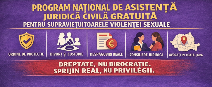 Solicităm crearea unui program național de asistență juridică civilă gratuită, specializat, accesibil și finanțat public, destinat supraviețuitoarelor violenței sexuale.