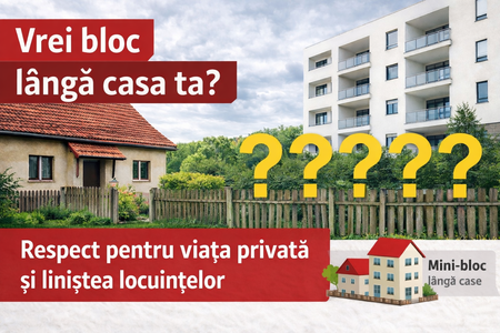 👉 Scopul nu este oprirea dezvoltării, ci realizarea acesteia în mod echilibrat, cu respect față de proprietarii de case, care au dreptul la liniște și intimitate în propria curte si cu evitarea aglomerarii.